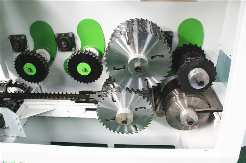清遠多片鋸廠家生產(chǎn)的自動對中圓木多片鋸采用可升降雙壓輪,齒輪傳動進給送料更有力,木材更穩(wěn)當。升降雙壓輪的齒輪設計,表面有圓型齒能更好的壓穩(wěn)木頭,有效降低鋸切阻力造成送料打滑。壓料輪雖有齒,但不會在已經(jīng)剝皮的木頭表面形成壓痕,影響鋸出來的板條拼大芯板時拼接有縫隙。